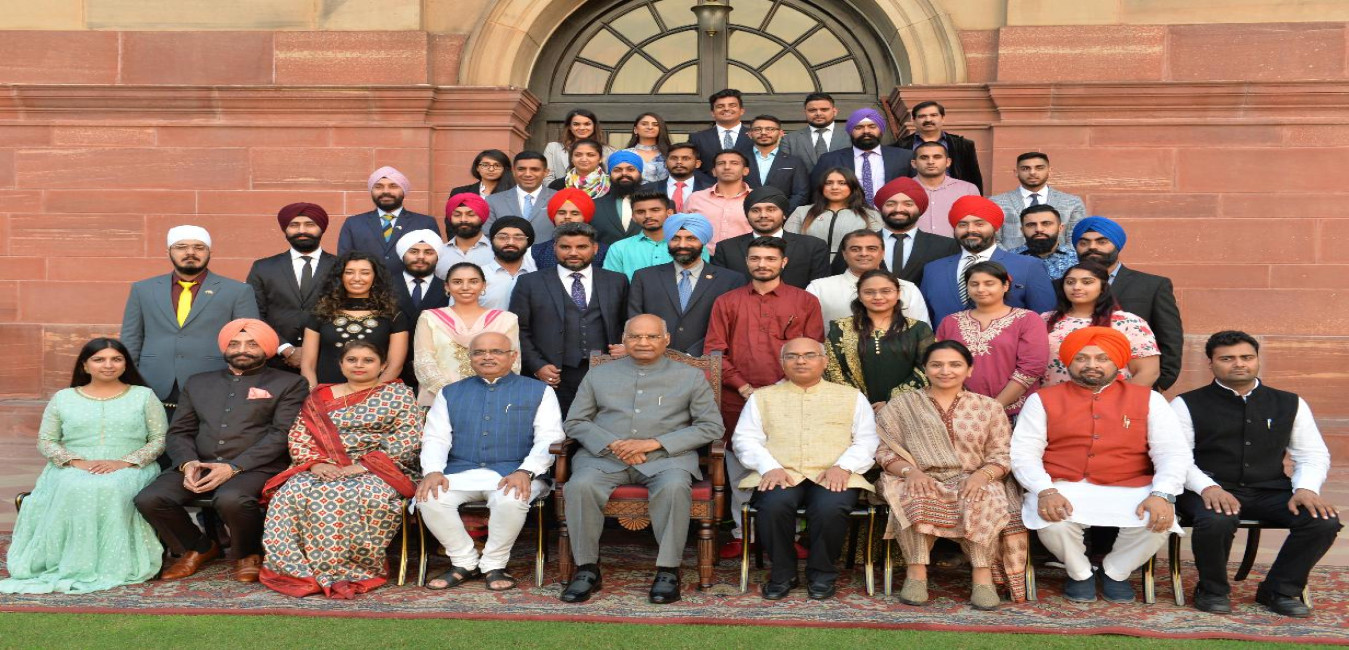 Dr. Vinay Sahasrabuddhe, MP (Rajya Sabha) & President, Indian Council for Cultural Relations along with a delegation of Sikh Youth from overseas meeting with the President of India, Shri Ram Nath Kovind, at Rashtrapati Bhavan on November 06, 2019.