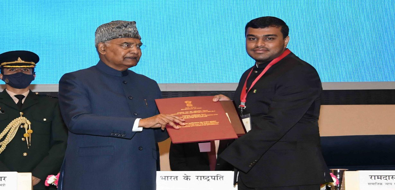 The President of India, Shri Ram Nath Kovind presenting the National Awards for the Empowerment of Persons with Disabilities, at Vigyan Bhavan, in New Delhi on December 03, 2021.