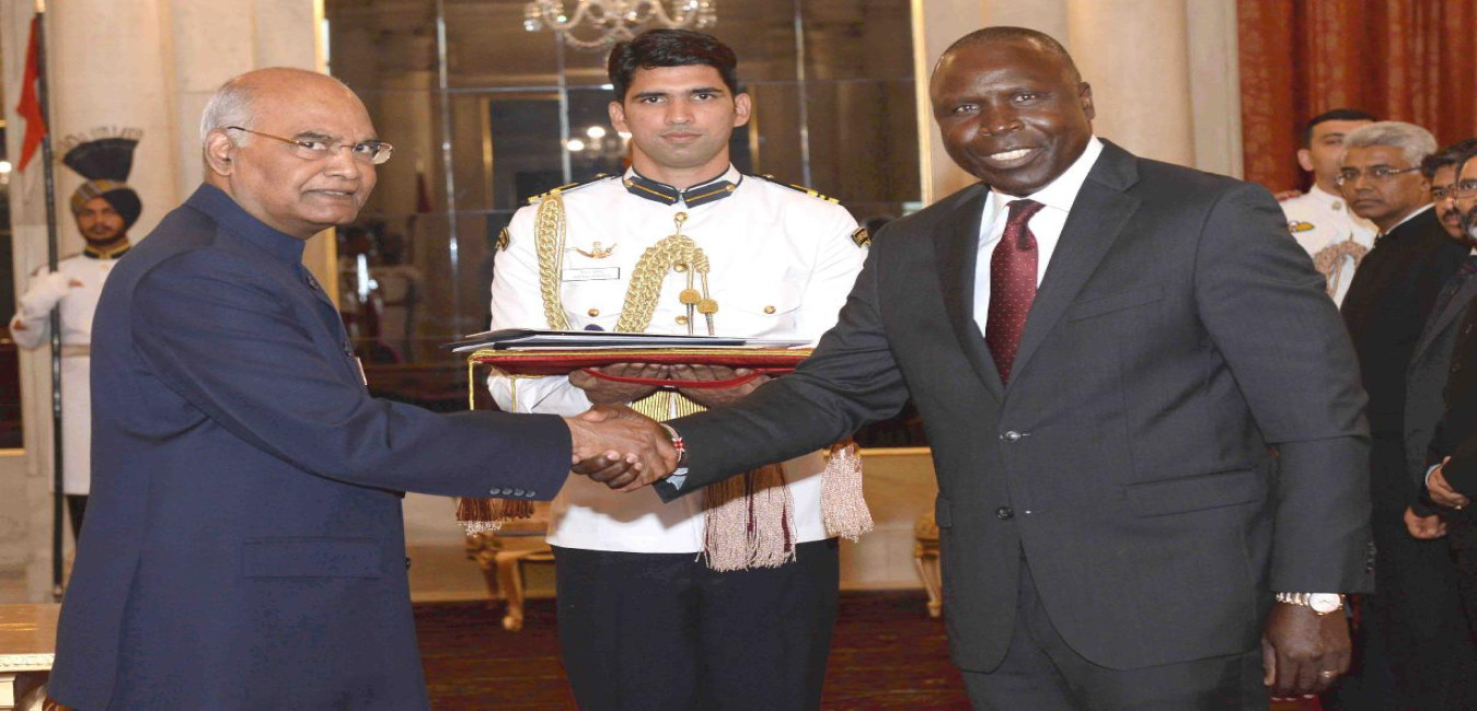 The High Commissioner-designate of the Republic of Kenya, H.E. Mr. Willy Kipkorir Bett presenting his credentials to the President of India, Shri Ram Nath Kovind, at Rashtrapati Bhavan on July 11, 2018.