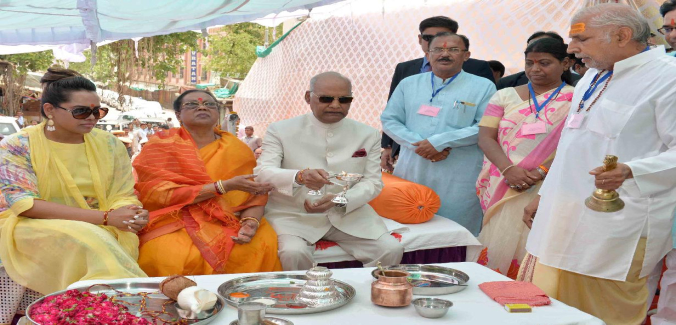 The President of India, Shri Ram Nath Kovind paying his respects at Jagatpita Brahma Mandir, at Pushkar, in Rajasthan on May 14, 2018.