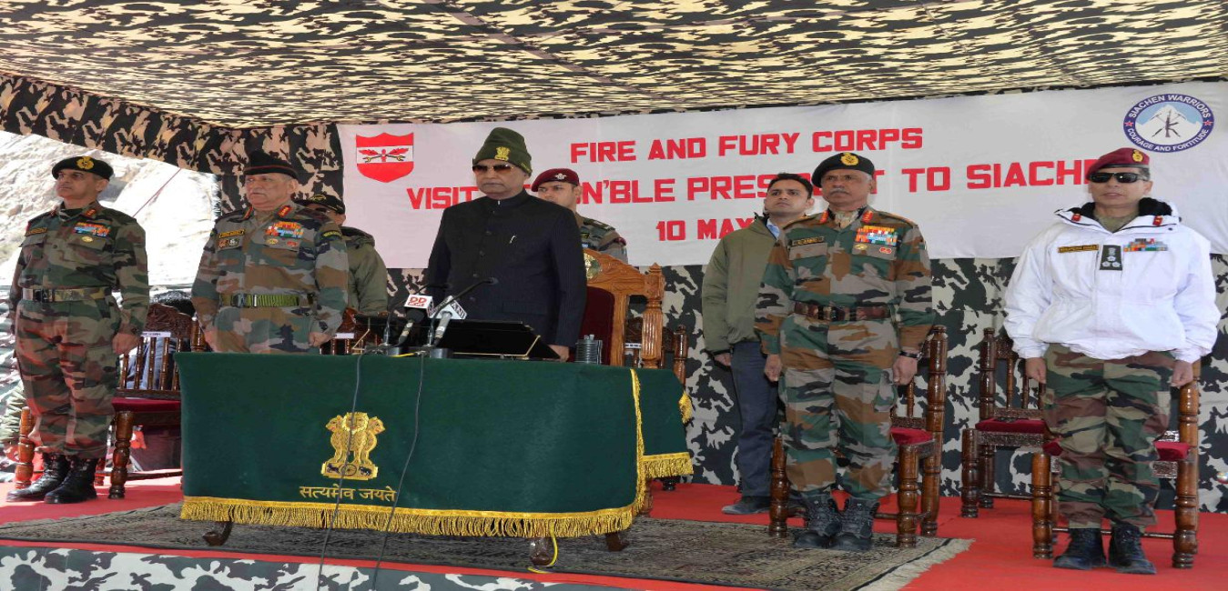 The President of India, Shri Ram Nath Kovind interacting with the soldiers during his visit to the Siachen Base Camp and the Kumar Post on May 10, 2018.