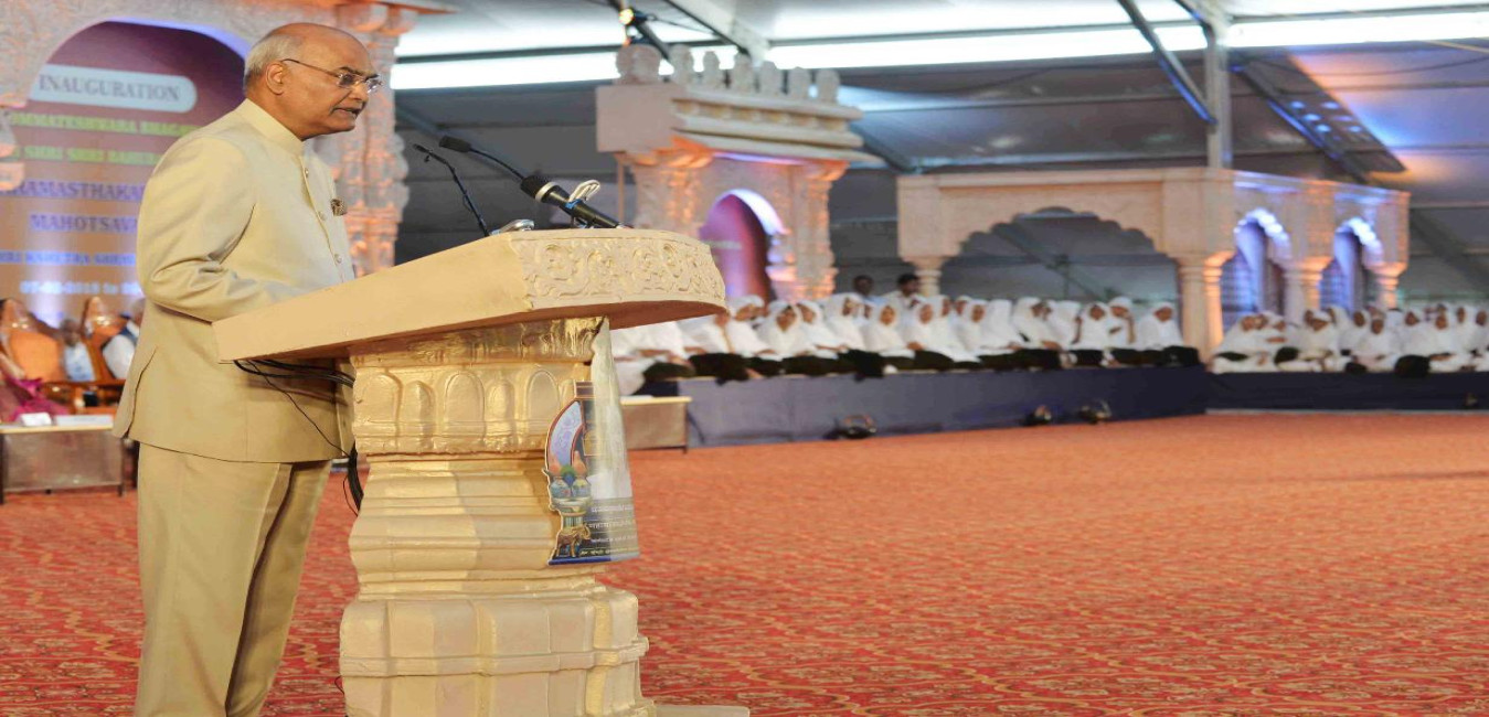 The President of India, Shri Ram Nath Kovind during the inauguration of the Mahamastakabhisheka Mohotsav 2018 of Gommatshwara Bhagwan Shri Bahubali Swami, at Shravanabelagola, in Karnataka on February 07, 2018.