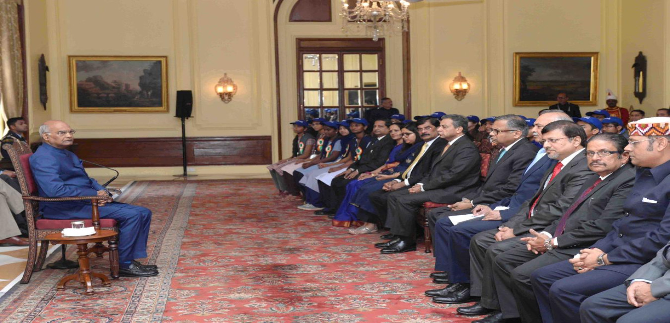 The President of India, Shri Ram Nath Kovind meeting with the winners of the Nationwide Tata Building India School Essay Competition, at Rashtrapati Bhavan on January 12, 2018.