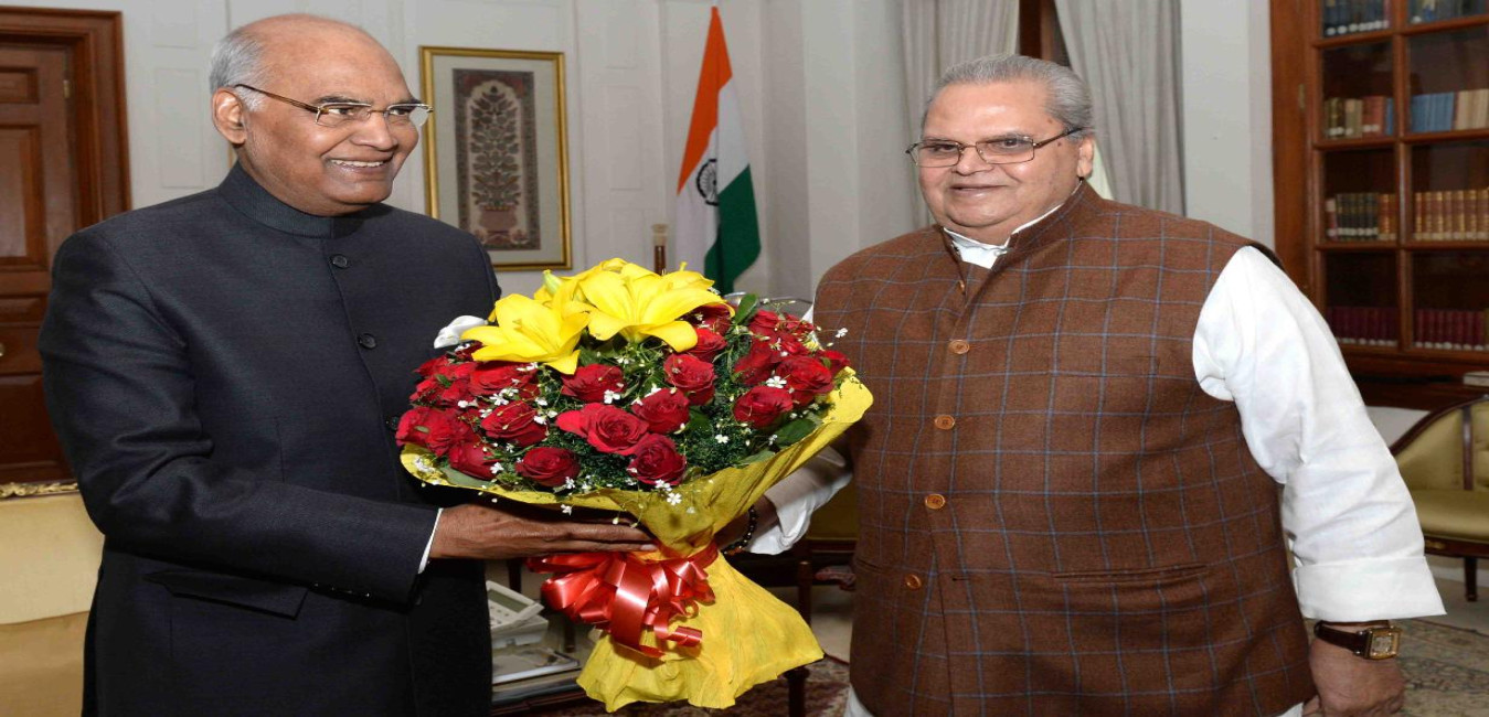 The Governor of Bihar, Shri Satya Pal Malik along with Shri Rohan Choudhary, Shri Heeral Maderna, Dr. Priyanka Choudhary and Dr. Jai Choudhary meeting with the President of India, Shri Ram Nath Kovind, at Rashtrapati Bhavan on December 21, 2017.