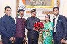 Smt. Sandhya Ray, MP (Lok Sabha) along with her son Shri Apurva Ray meeting with the President of India, Shri Ram Nath Kovind, at Rashtrapati Bhavan on January 20, 2020.