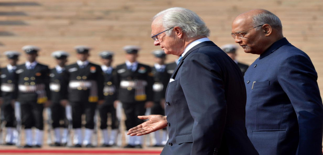 The President of India, Shri Ram Nath Kovind accords a ceremonial welcome to Their Majesties King Carl XVI Gustaf and Queen Silvia of Sweden, at Rashtrapati Bhavan on December 02, 2019.