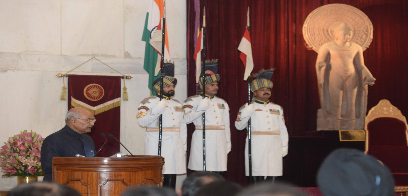 The President of India, Shri Ram Nath Kovind administering the oath of office to Shri Justice Sharad Arvind Bobde as the Chief Justice of the Supreme Court of India, at a Swearing-in-Ceremony, in Rashtrapati Bhavan on November 18, 2019.