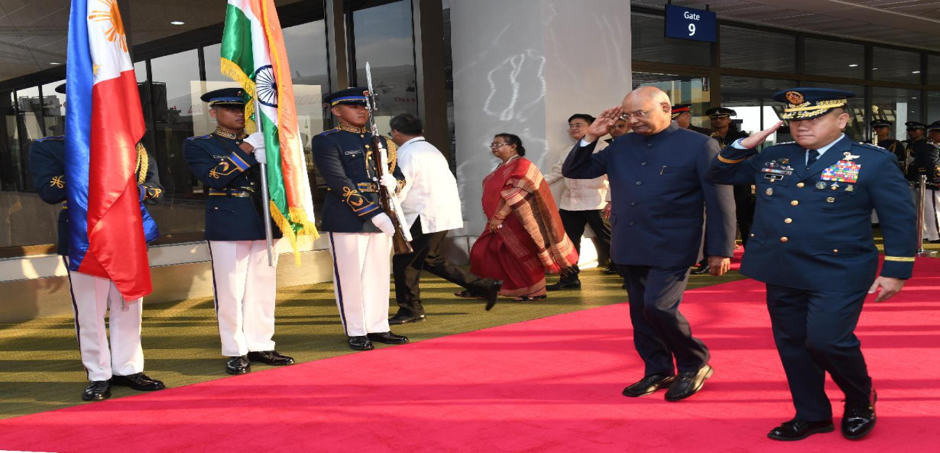 The President of India, Shri Ram Nath Kovind being received on his arrival, at Aquino Ninoy International Airport, in Manila, Philippines on October 17, 2019.