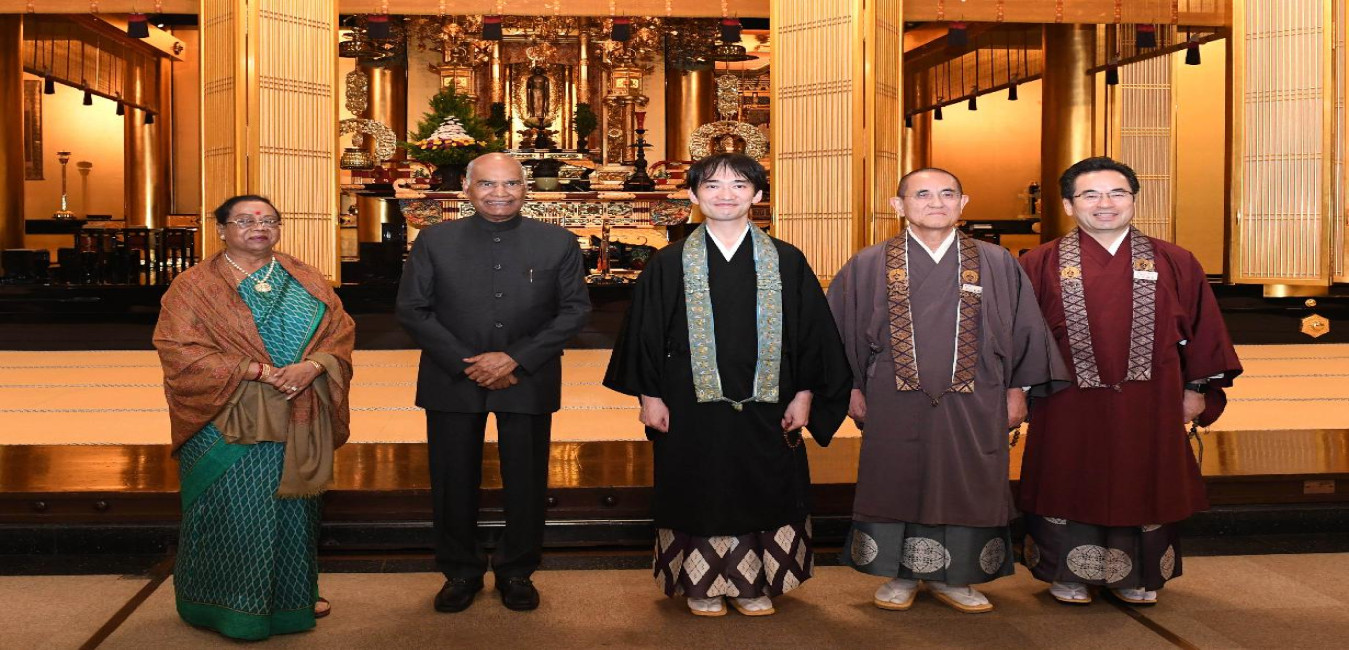 The President of India, Shri Ram Nath Kovind planting a sapling of Maha Bodhi Tree and paying his respects at Tsukiji Hongwanji Buddhist Temple, in Tokyo, Japan on October 21, 2019.