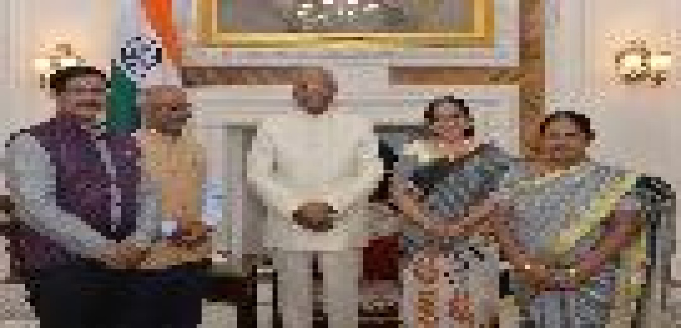 Shri Sanjay Kumar Mahawar Bharatiya and Shri Vishwa Prakash meeting with the President of India, Shri Ram Nath Kovind, at Rashtrapati Bhavan on April 16, 2019.