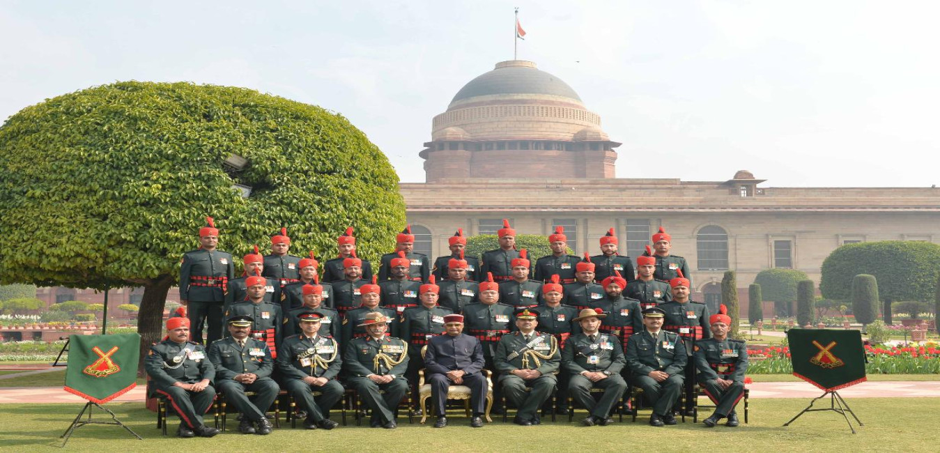 The President of India, Shri Ram Nath Kovind with the Personnel of the Tri Service Band Contingents (participants of the Republic Day Parade & Beating Retreat Ceremony) and Provost Outriders of the Three Services, at Rashtrapati Bhavan on January 30, 2019.