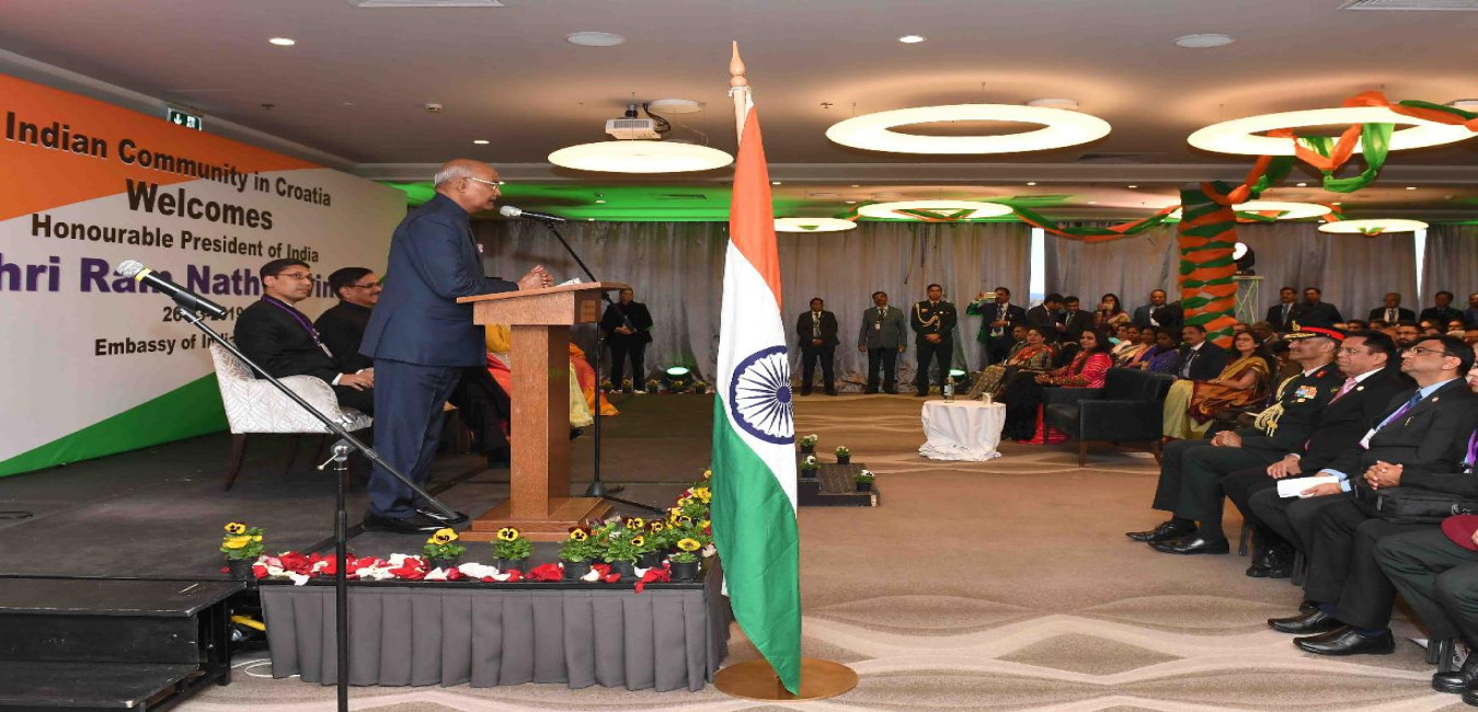The President of India, Shri Ram Nath Kovind addressing the Indian Community at a Reception, at Hotel The Westin, Zagreb, in Croatia on March 26, 2019.