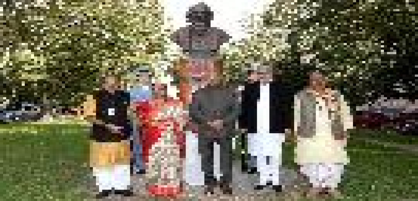 The President of India, Shri Ram Nath Kovind paying floral tributes at the statue of Rabindranath Tagore, at Thakurova Park, Prague, in the Czech Republic on September 09, 2018.