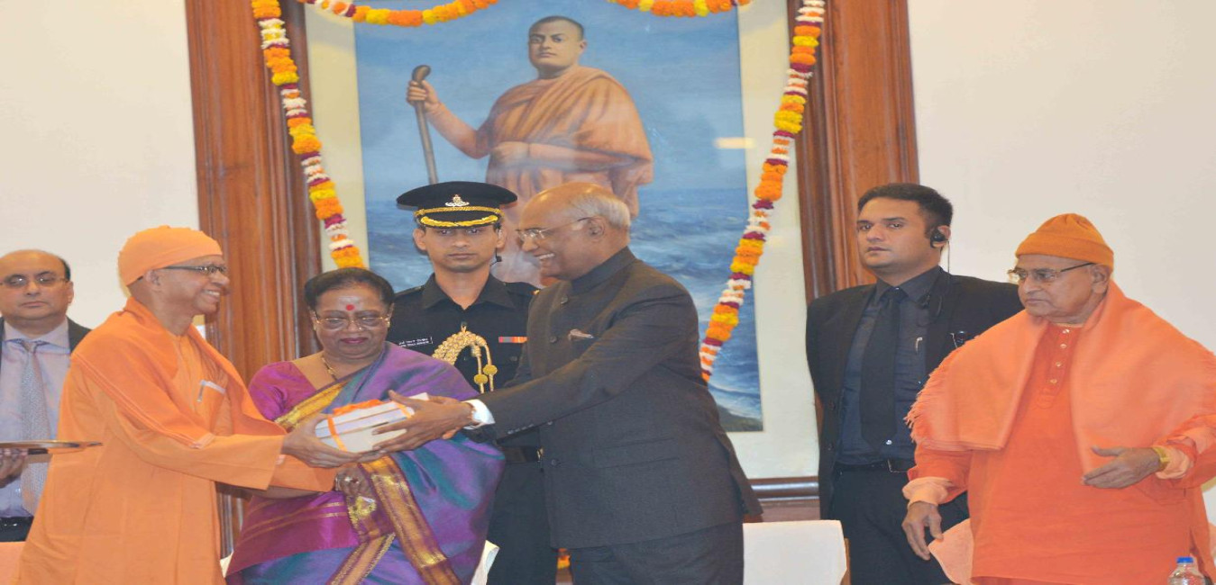 The President of India, Shri Ram Nath Kovind attending the 150th Birth Anniversary Celebration of Sister Nivedita, organized by the Ramakrishna Mission, in New Delhi on October 28, 2017.