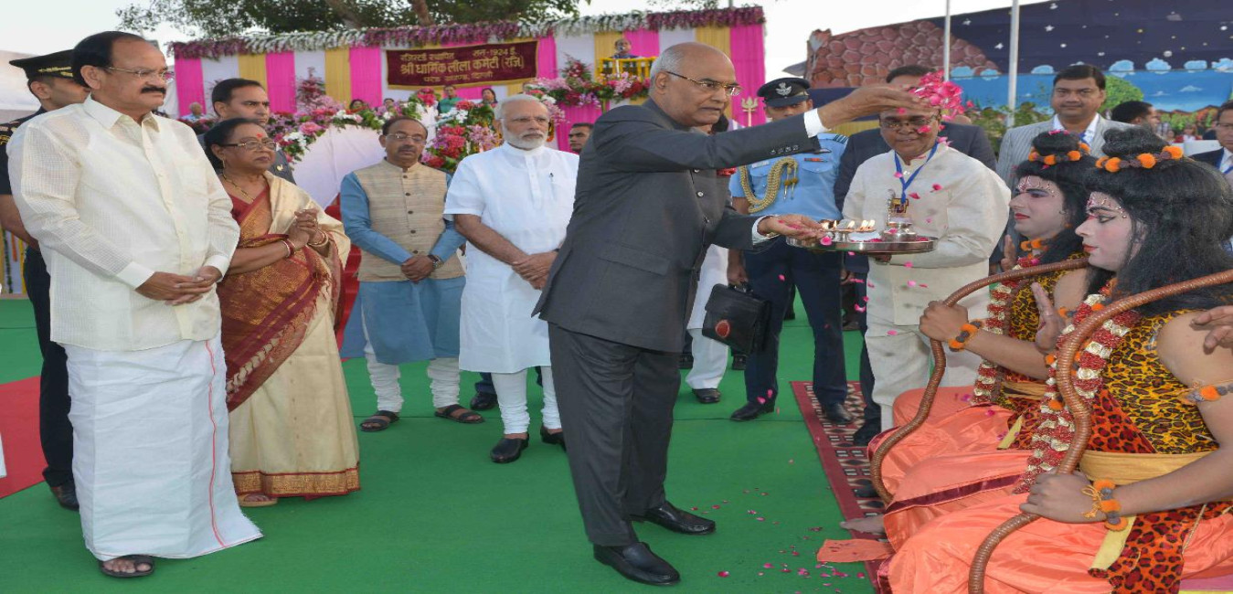 The President of India, Shri Ram Nath Kovind attending Dussehra Festival, at Shri Dharmic Leela Committee, Madhavdas Park near Red Fort, in New Delhi on September 30, 2017.