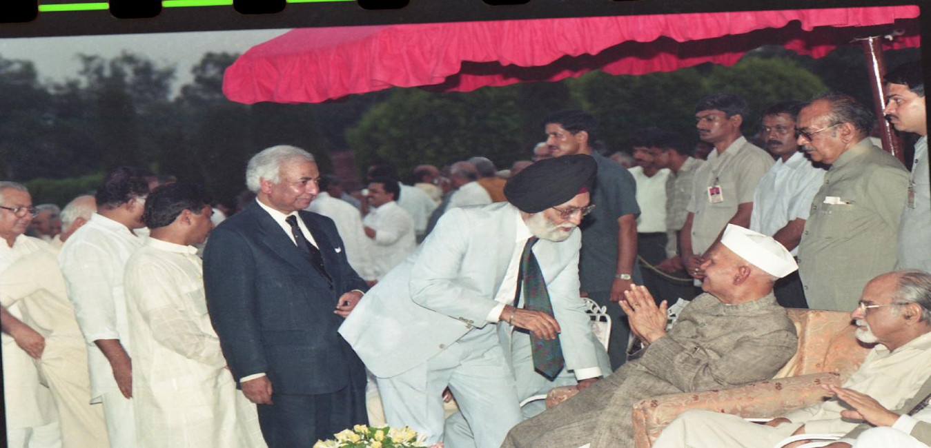 The President of India, Dr. Shankar Dayal Sharma meeting with Mr. Meena DCO at Rashtrapati Bhavan in New Delhi on July 24, 1997