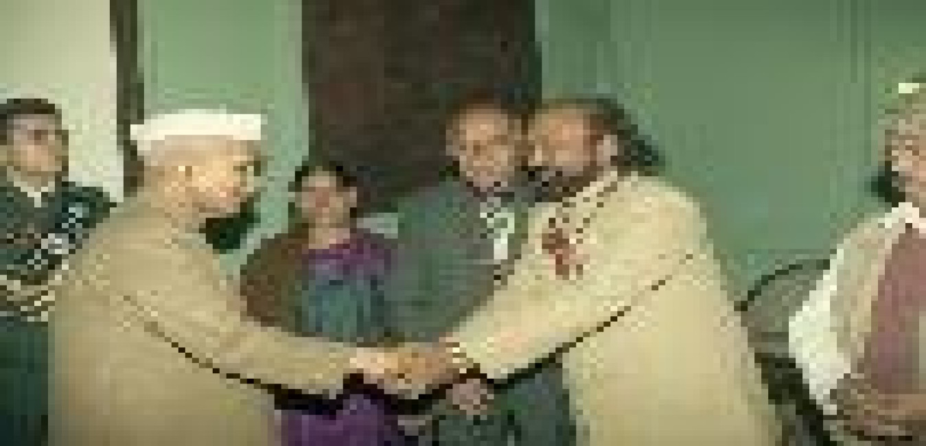 The President of India, Dr. Shankar Dayal Sharma receiving copies of two books "Achman" & "Anubhuti" from Shri Anand Shankar Sharma and Dr. (Miss) Rajesh Rastogi at Rashtrapati Bhavan in New Delhi on January 10, 1997.