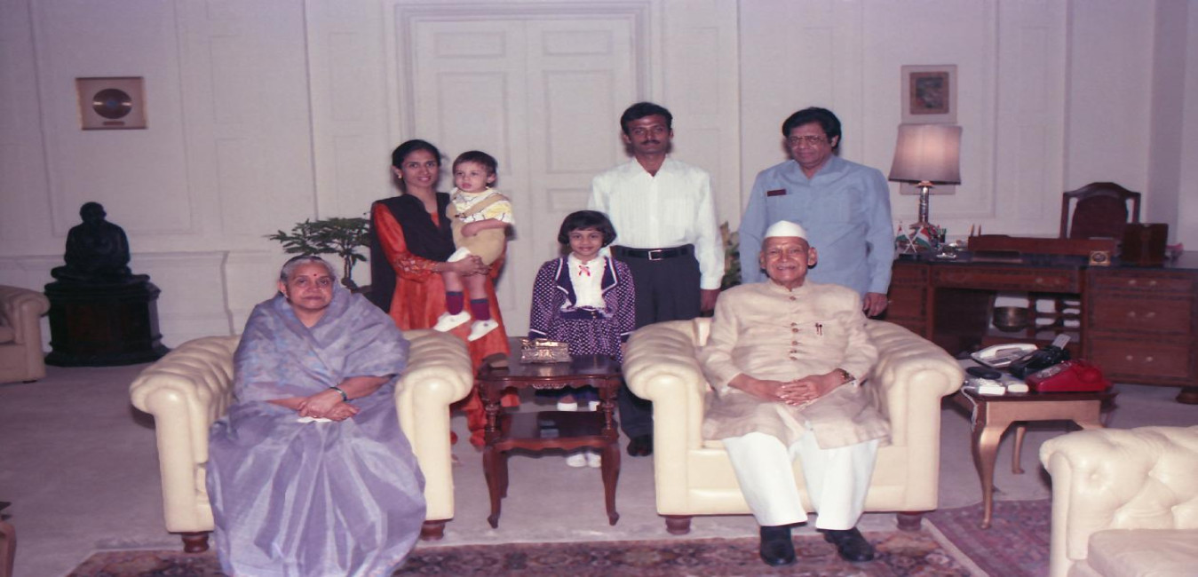 The President of India, Dr. Shankar Dayal Sharma meeting with Shri E. Ahmed with his family at Rashtrapati Bhavan in New Delhi on June 11, 1994.