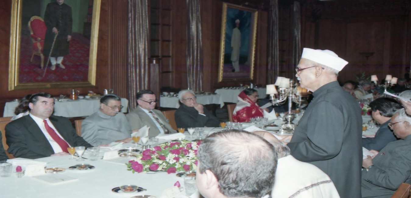The President of India, Dr. Shankar Dayal Sharma hosting Banquet in honour of H.E. Mr. Emomali Sharipovich Rakhmonov, President of the Republic of Tajikistan, at Rashtrapati Bhavan in New Delhi on December 11, 1995.