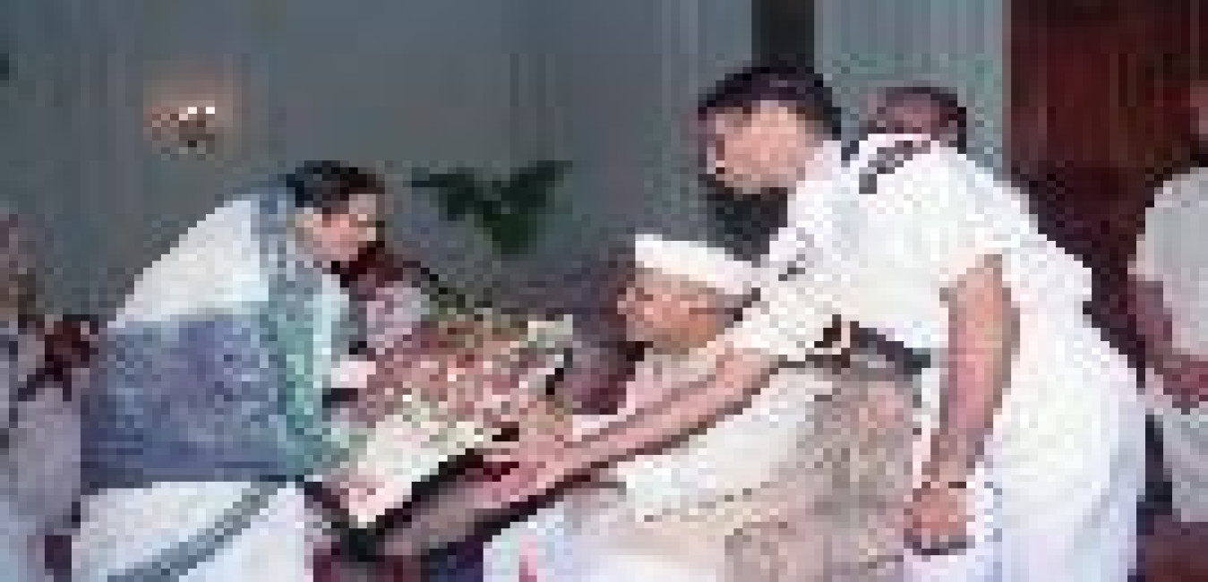 The President of India, Dr. Shankar Dayal Sharma receiving new year Greetings from the Vice President, Shri K.R. Narayanan, the Prime Minister, Shri P.V. Narasimha Rao and other dignitaries, at Rashtrapati Bhavan in New Delhi on January 01, 1994.