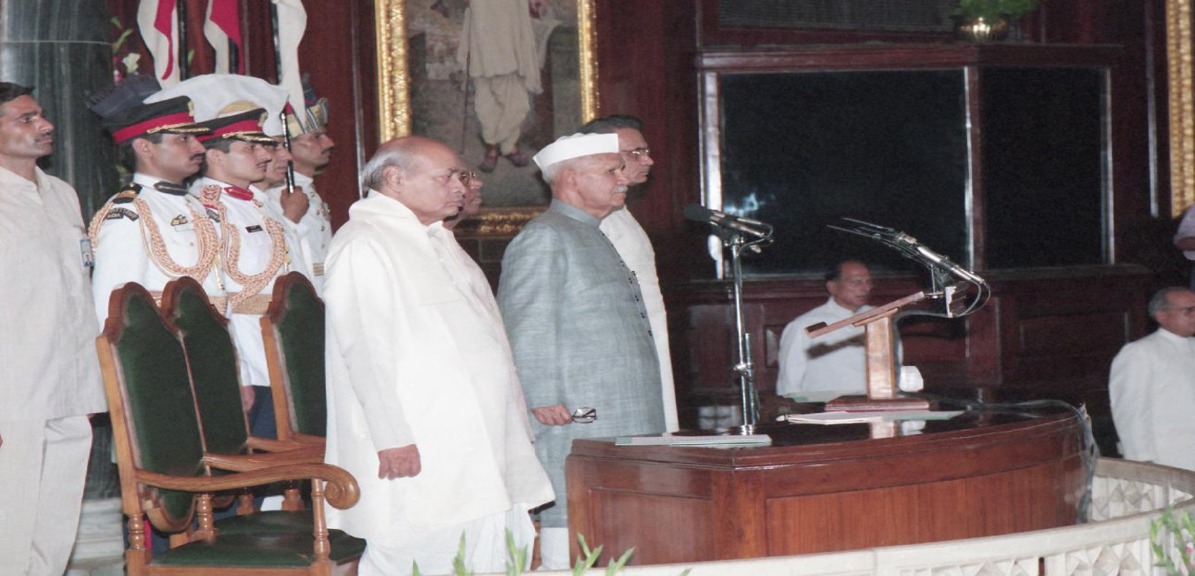 The President of India, Shri Shankar Dayal Sharma administering the Oath to the Council of Ministers, at a Swearing-in Ceremony at Rashtrapati Bhavan in New Delhi on May 16, 1996.
