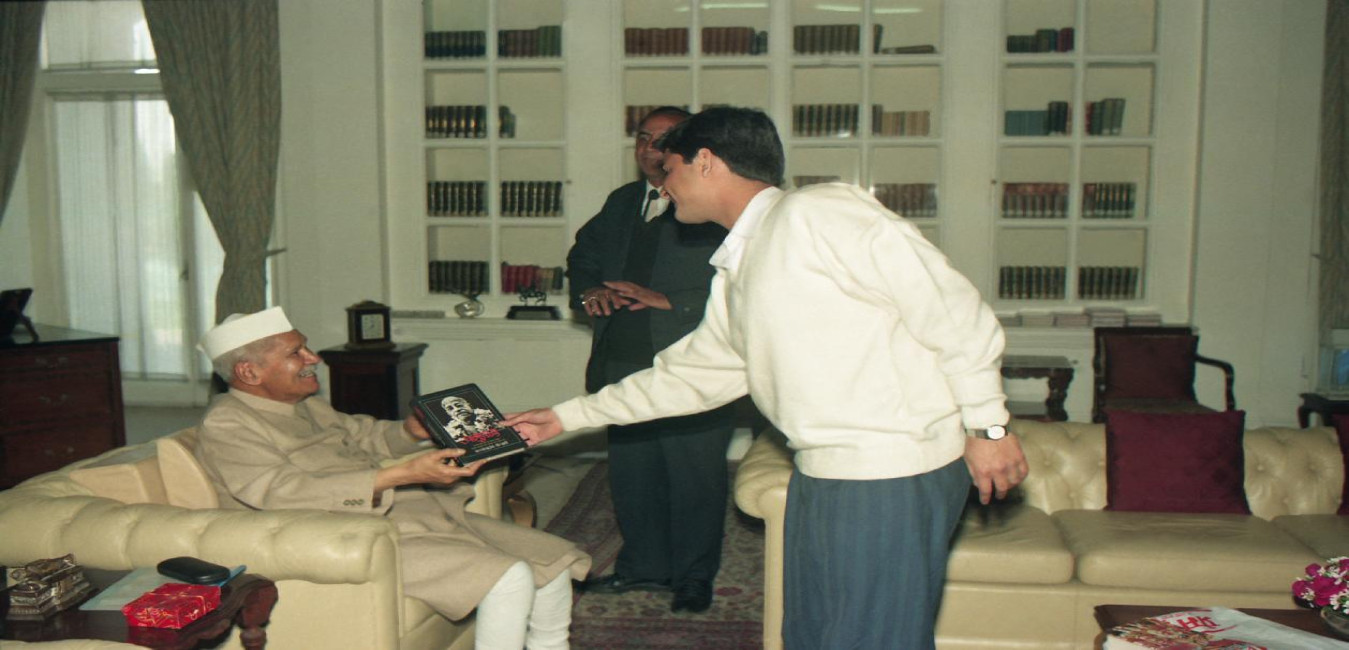 The President of India, Dr. Shankar Dayal Sharma receiving a copy of the book from Shri Kirty Sharma with others at Rashtrapati Bhavan in New Delhi on February 08, 1995.