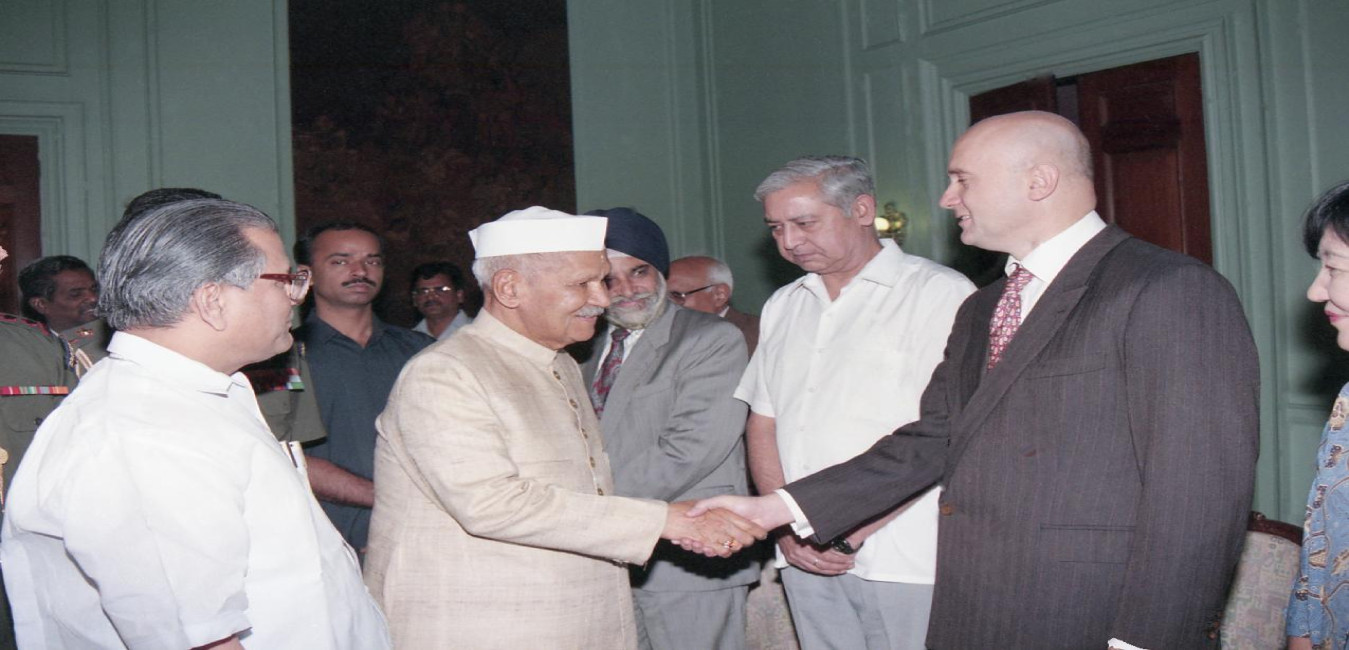 The President of India, Dr. Shankar Dayal Sharma receiving copy of Books "Burden of Bondage" and "Vanchiton Ki Vyatha" from Dr. L. Mishra and "Bonded Labour Justice Through Judiciary" from Dr. Mahavir Jain at Rashtrapati Bhavan in New Delhi on May 10, 1997