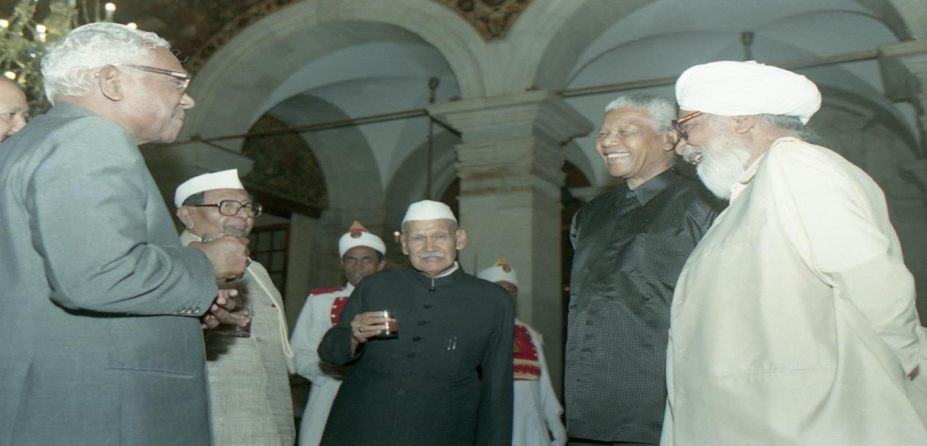 The President of India, Dr. Shankar Dayal Sharma hosting Banquet in Honour of H.E. Dr. Nelson R. Mandela, President of South Africa, at Rashtrapati Bhavan in New Delhi on January 25, 1995.