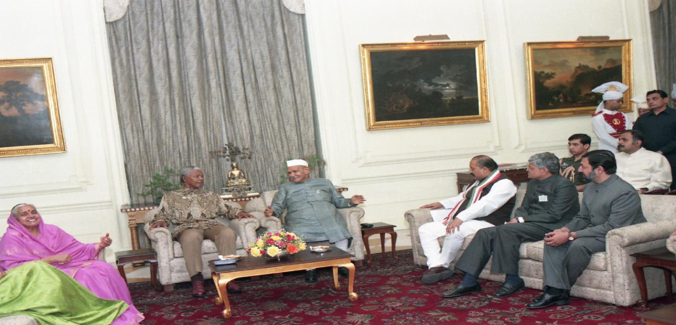 The President of the Republic of South Africa, H.E. Dr. Nelson R. Mandela calling on the President of India, Dr. Shankar Dayal Sharma, at Rashtrapati Bhavan in New Delhi on March 27, 1997.