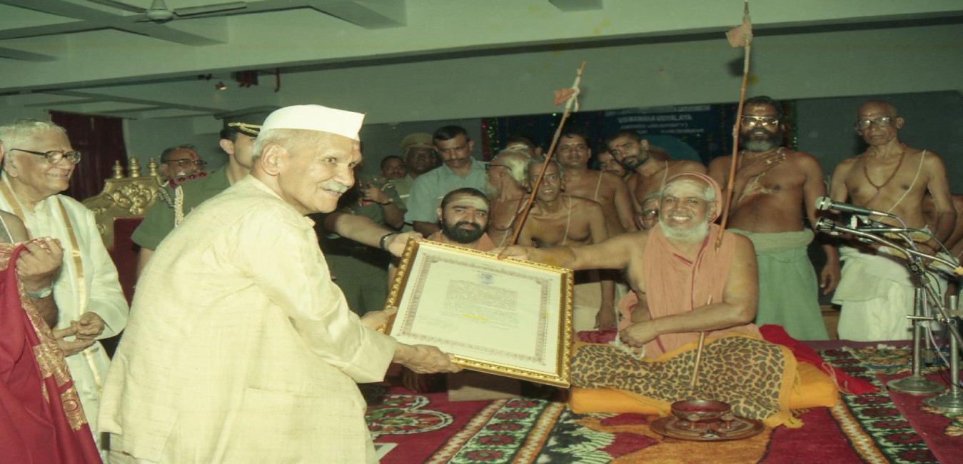 The President of India, Dr. Shankar Dayal Sharma during the Sri Chandrasekharendra Saraswathi Viswa Mahavidyalaya Deemed University function, at Kancheepuram, Tamil Nadu on September 20, 1996.