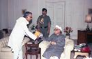 The President of India, Dr. Shankar Dayal Sharma receiving a copy of the book of Shri Rameshwar Singh, Ex-MP at Rashtrapati Bhavan in New Delhi on March 25, 1994.