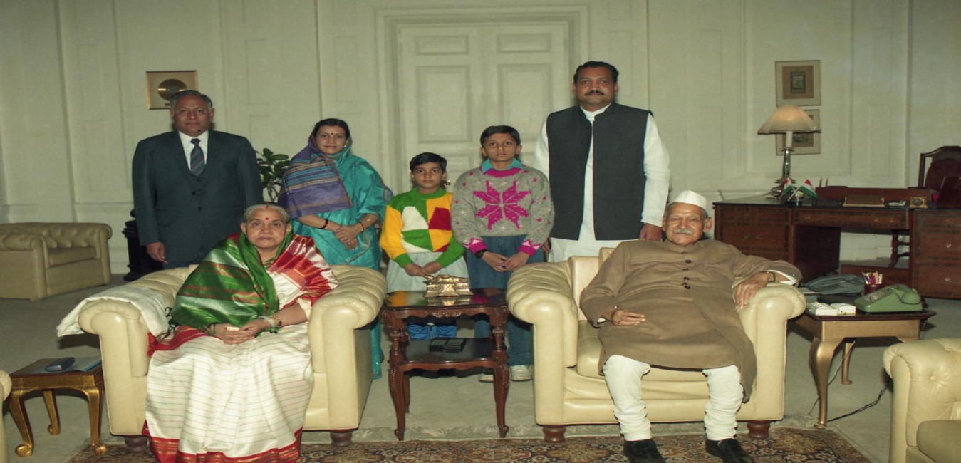 The President of India, Dr. Shankar Dayal Sharma meeting with Smt. & Shri Ravindra Chaube, MOS for Higher Education, Government of Madhya Pradesh with others at Rashtrapati Bhavan in New Delhi on January 10, 1997.