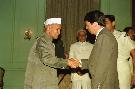 The President of India, Dr. Shankar Dayal Sharma meeting with H.E. Dr. Rorigo Pardo Garcia-Pena, Foreign Minister of Colombia at Rashtrapati Bhavan in New Delhi on April 21, 1995.