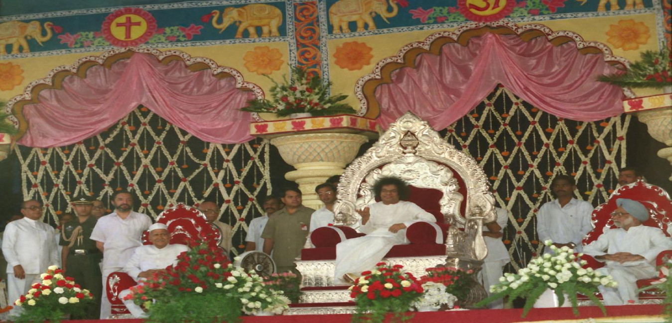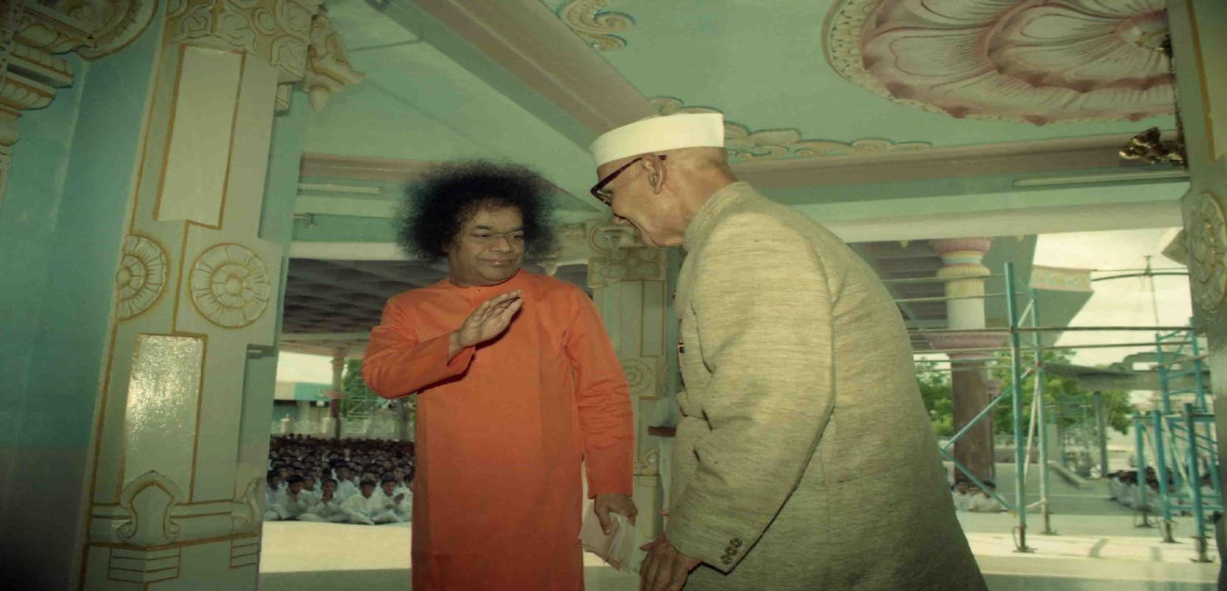 The President of India, Dr. Shankar Dayal Sharma with Sri Sathya Sai Baba, during his visit at Puttaparthi on June 15, 1995.