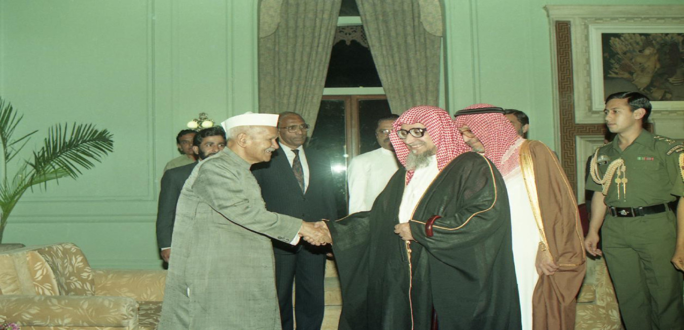 A Delegation from the Saudi Arabian Parliamentary Delegation led by H.E. Shaikh Mohammed Bin Ibrahim Bin Jubair, President of the Shoora Council calling on the President of India, Dr. Shankar Dayal Sharma at Rashtrapati Bhavan in New Delhi on March 17, 1997.