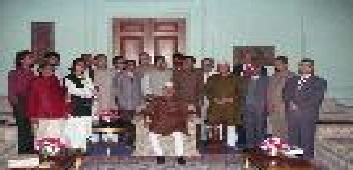 The President of India, Dr. Shankar Dayal Sharma receiving a copy of the book "Skandpuran-Kedarkhandam" (Hindi translation) of Shri Shivanand Nautiyal at Rashtrapati Bhavan in New Delhi on March 07, 1995.