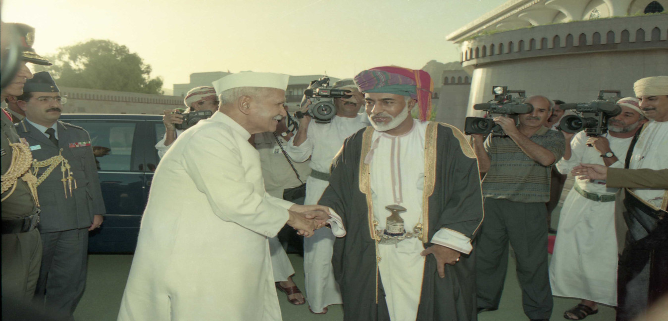 The President of India, Dr. Shankar Dayal Sharma at a private dinner by Sultan of Oman, H.M. Sultan Qaboos Bin Said, in Muscat on October 04, 1996.