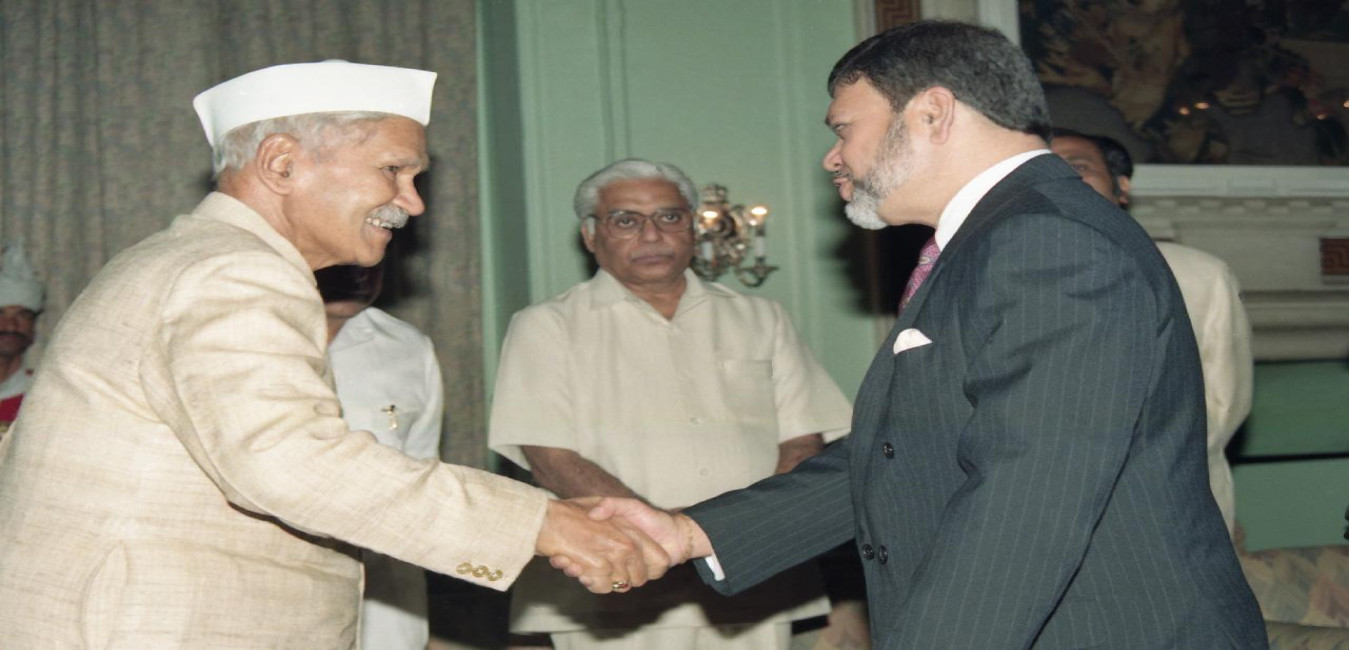 The President of India, Dr. Shankar Dayal Sharma meeting with H.E. Mr. V.L. Mette, First Deputy Prime Minister of Kazakhstan and Co-Chairman of the Indo-Kazakh Joint Commission at Rashtrapati Bhavan in New Delhi on May 23, 1995.