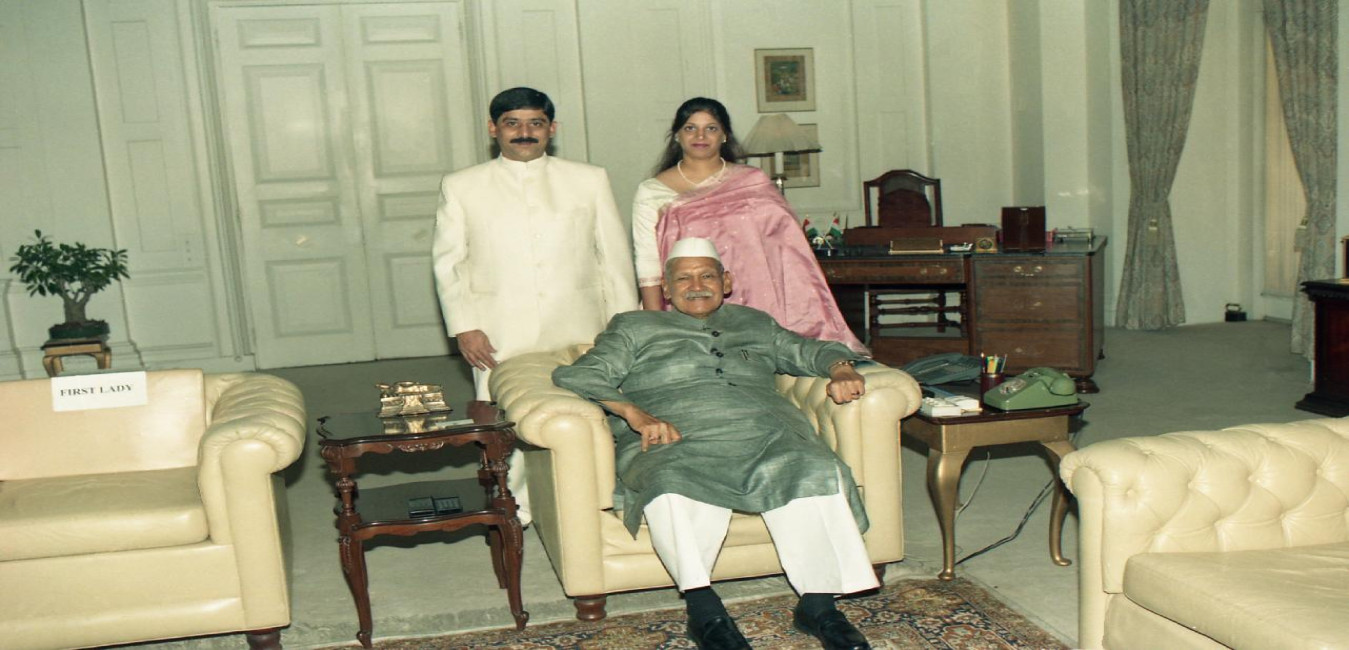 The President of India, Dr. Shankar Dayal Sharma meeting with Shri V. Pradeep Kumar Dev MP(LS) with his wife at Rashtrapati Bhavan in New Delhi on April 25, 1997.