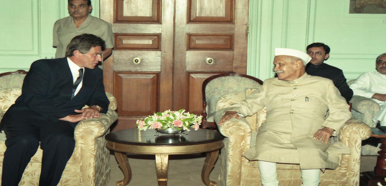 The Austrian Federal Minister of Finance, H.E. Mr. Viktor Klima calling on the President of India, Dr. Shankar Dayal Sharma, at Rashtrapati Bhavan in New Delhi on August 06, 1996.