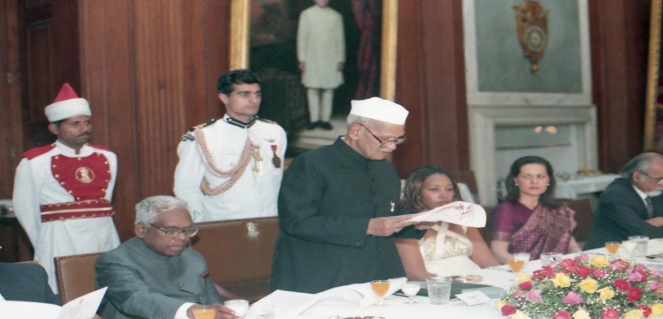 The President of India, Dr. Shankar Dayal Sharma hosting Banquet in honour of the President of the Republic of South Africa, H.E. Dr. Nelson R. Mandela and H.R.H. Princess Zenani Mandela-Dlamini, at Rashtrapati Bhavan in New Delhi on March 27, 1997.