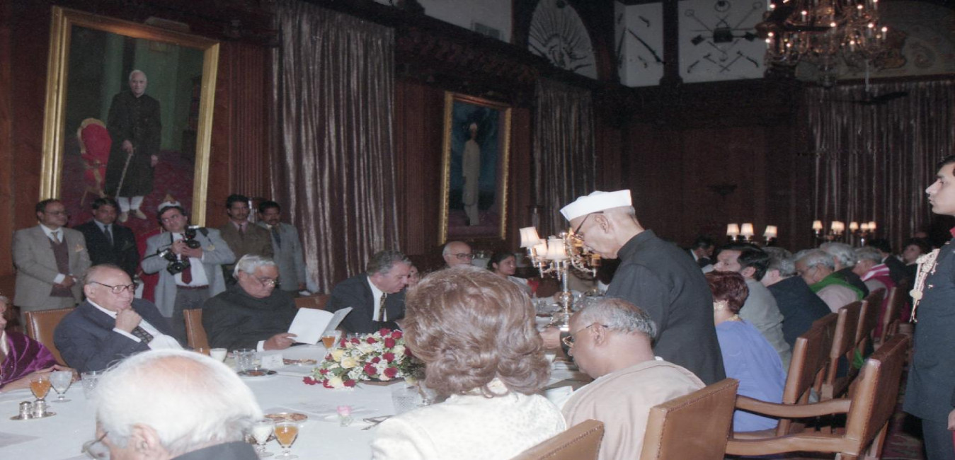 The President of India, Dr. Shankar Dayal Sharma hosting Banquet in honour of the President of the Republic of Cyprus, HE Mr. Glafcos Clerides and Mrs. Lilla-Irene Clerides, and witnessing cultural programme, at Rashtrapati Bhavan in New Delhi on February 10, 1997.