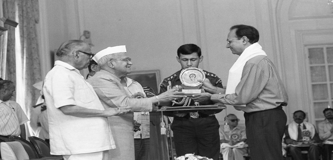 The President of India, Dr. Shankar Dayal Sharma presenting awards to non-Hindi speaking Hindi writers at Rashtrapati Bhavan in New Delhi on June 20, 1997.