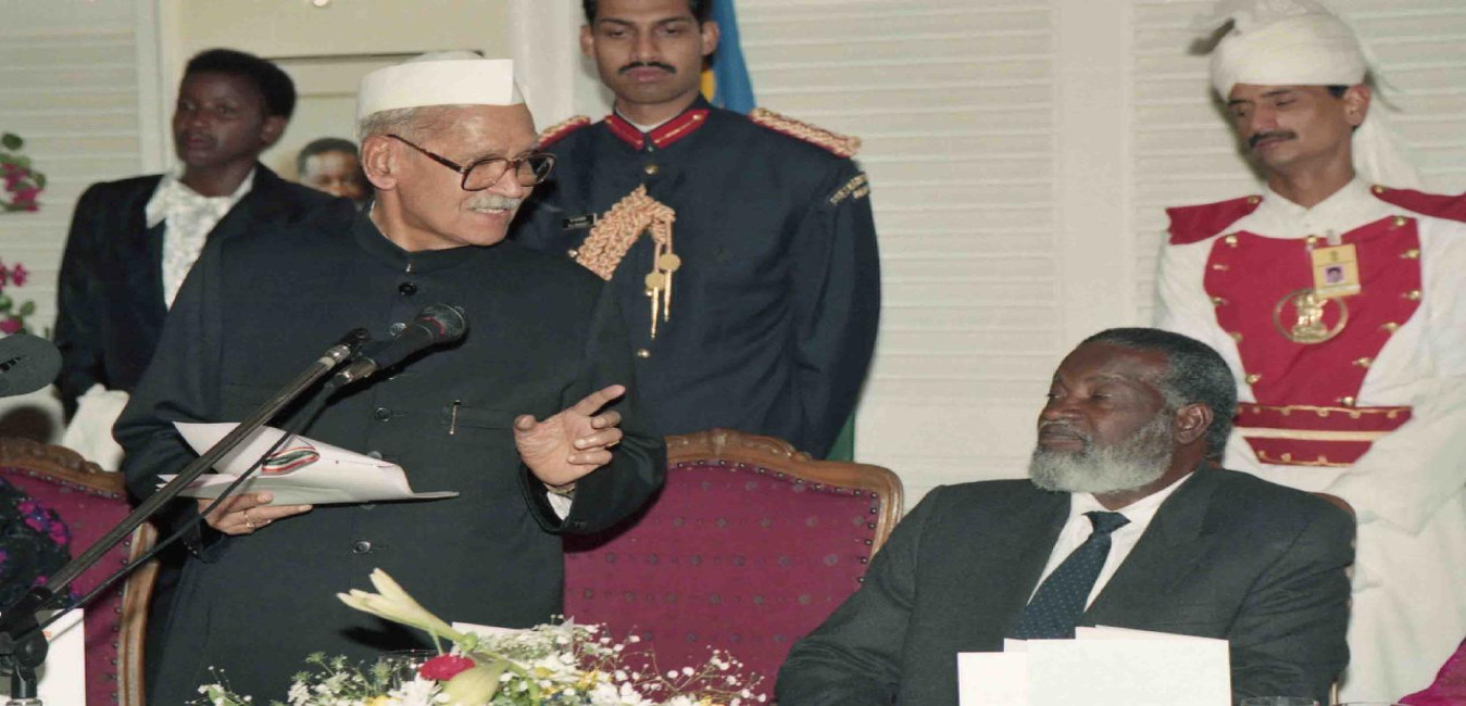 The President of India, Dr. Shankar Dayal Sharma at the lunch hosted by the Governor of Erongo Region, at Walvis Bay on June 06, 1995.