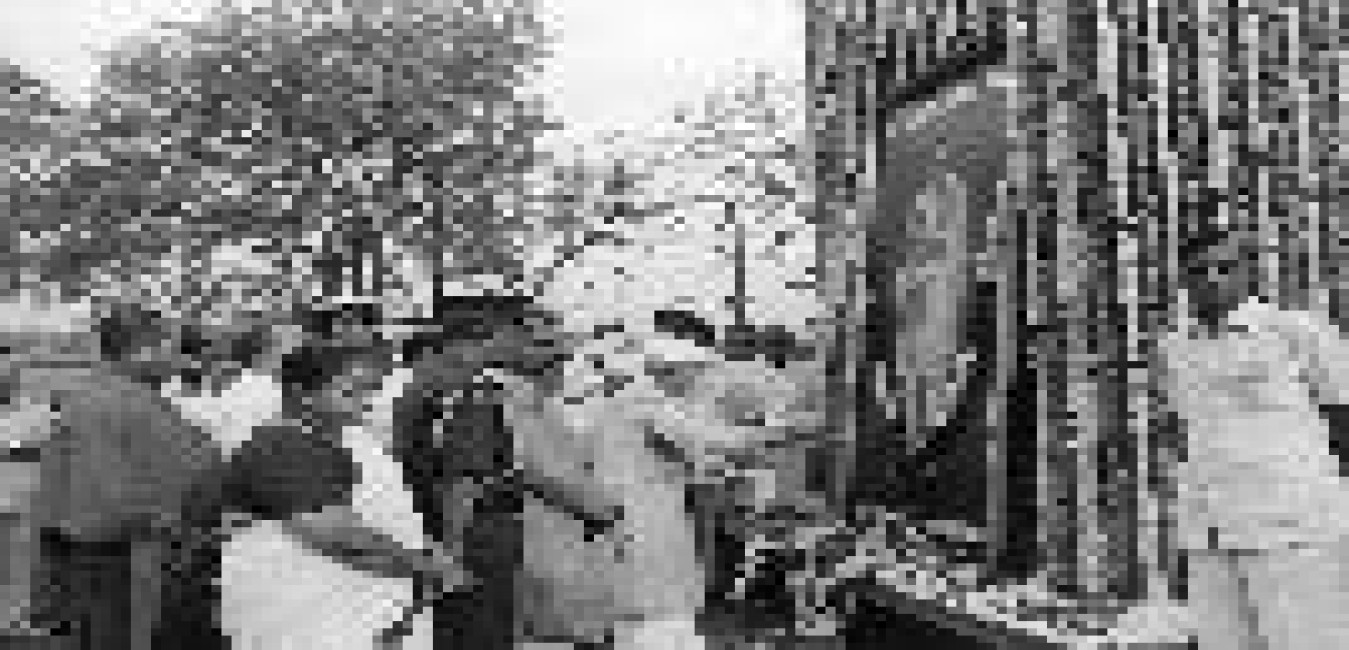 The President of India, Dr. Shankar Dayal Sharma paying floral tributes to Baba Saheb Dr. B.R. Ambedkar on the occasion of his 104th Birth Anniversary at Parliament House Lawns in New Delhi on April 14, 1995.