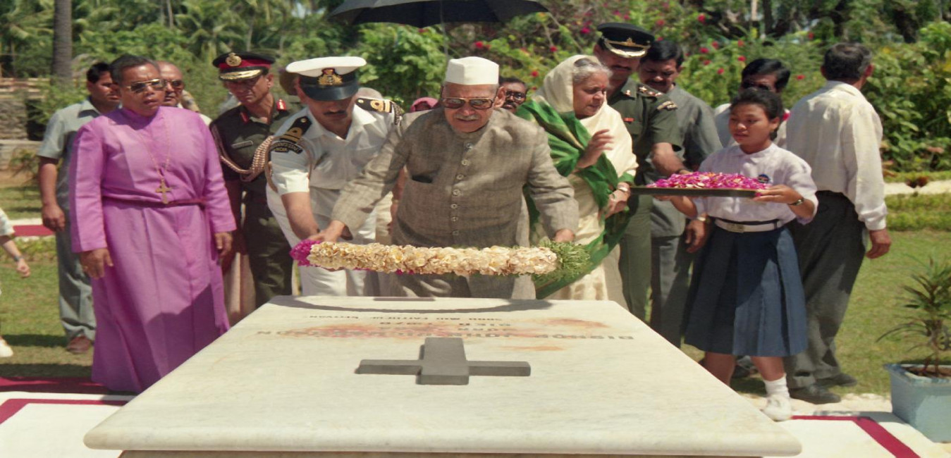 The President of India, Dr. Shankar Dayal Sharma laying wreath at Bishop John Richardson's Statue, at Car Nicobar on February 19, 1995.