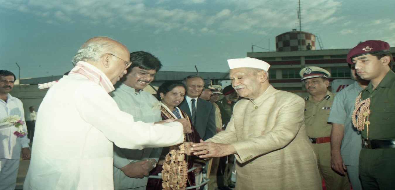 The President of India, Dr. Shankar Dayal Sharma being received at Mysore Helipad on May 30, 1997
