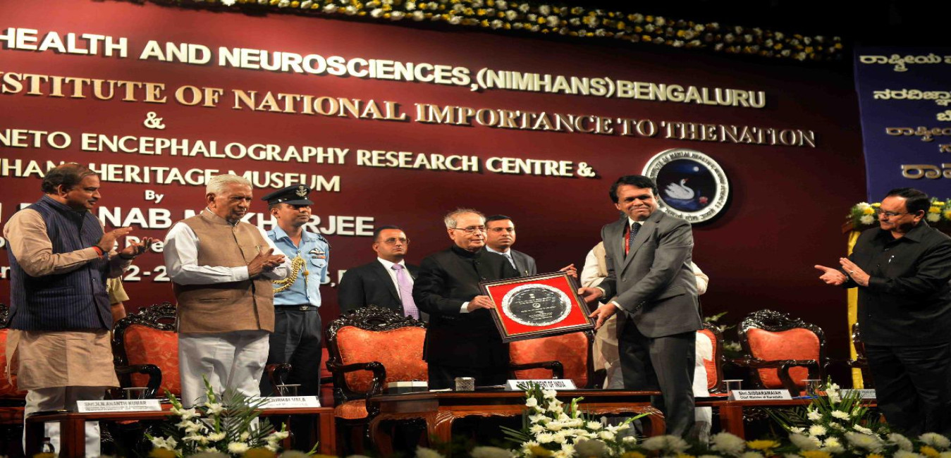 The President of India, Shri Pranab Mukherjee dedicating the National Institute of Mental Health and Neuro-Sciences (NIMHANS), Bengaluru to the Nation as an Institute of National importance and inaugurating the Magneto Encephalography Research Center and NIMHANS Heritage Museum, at Bengaluru, in Karnataka on December 22, 2015.