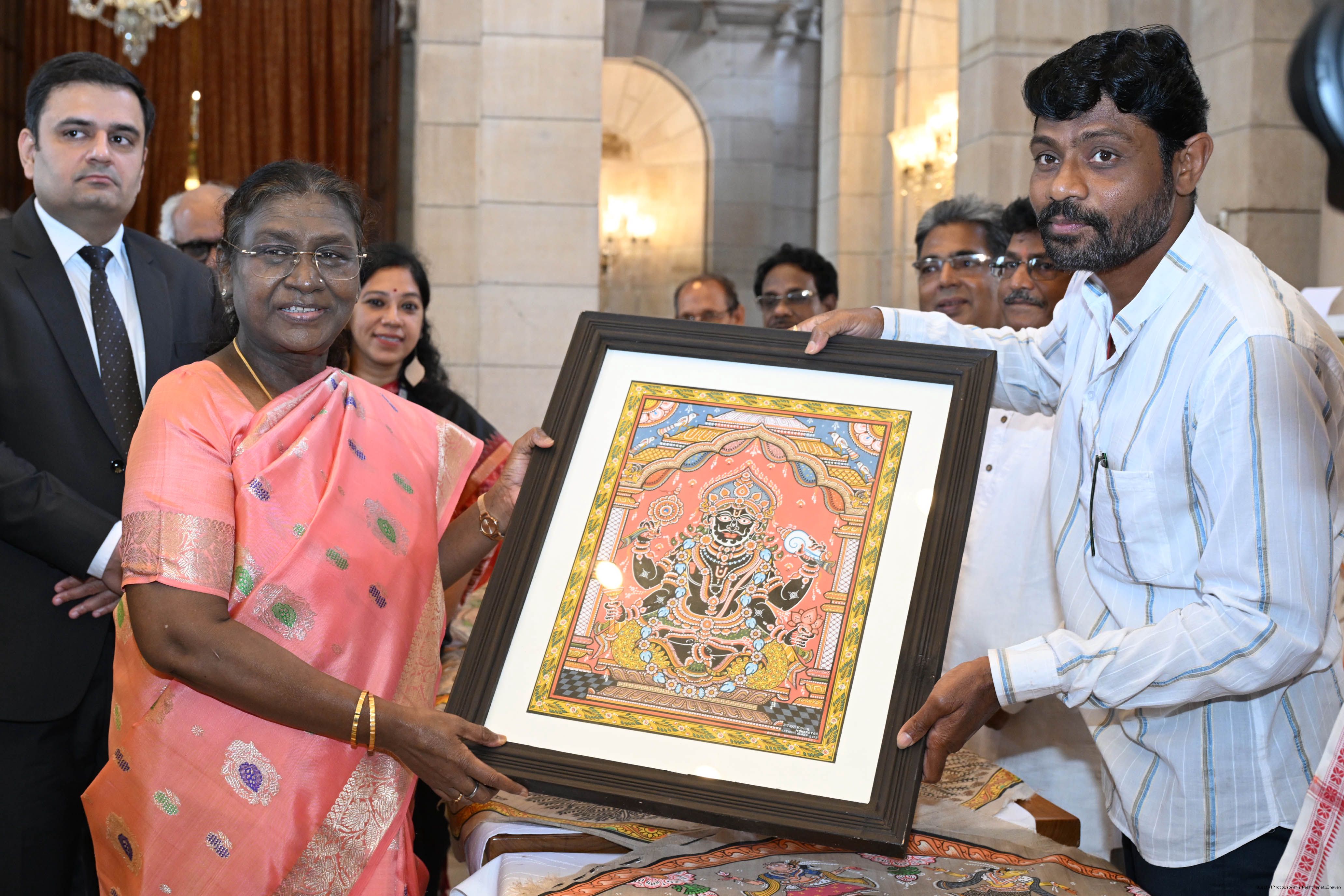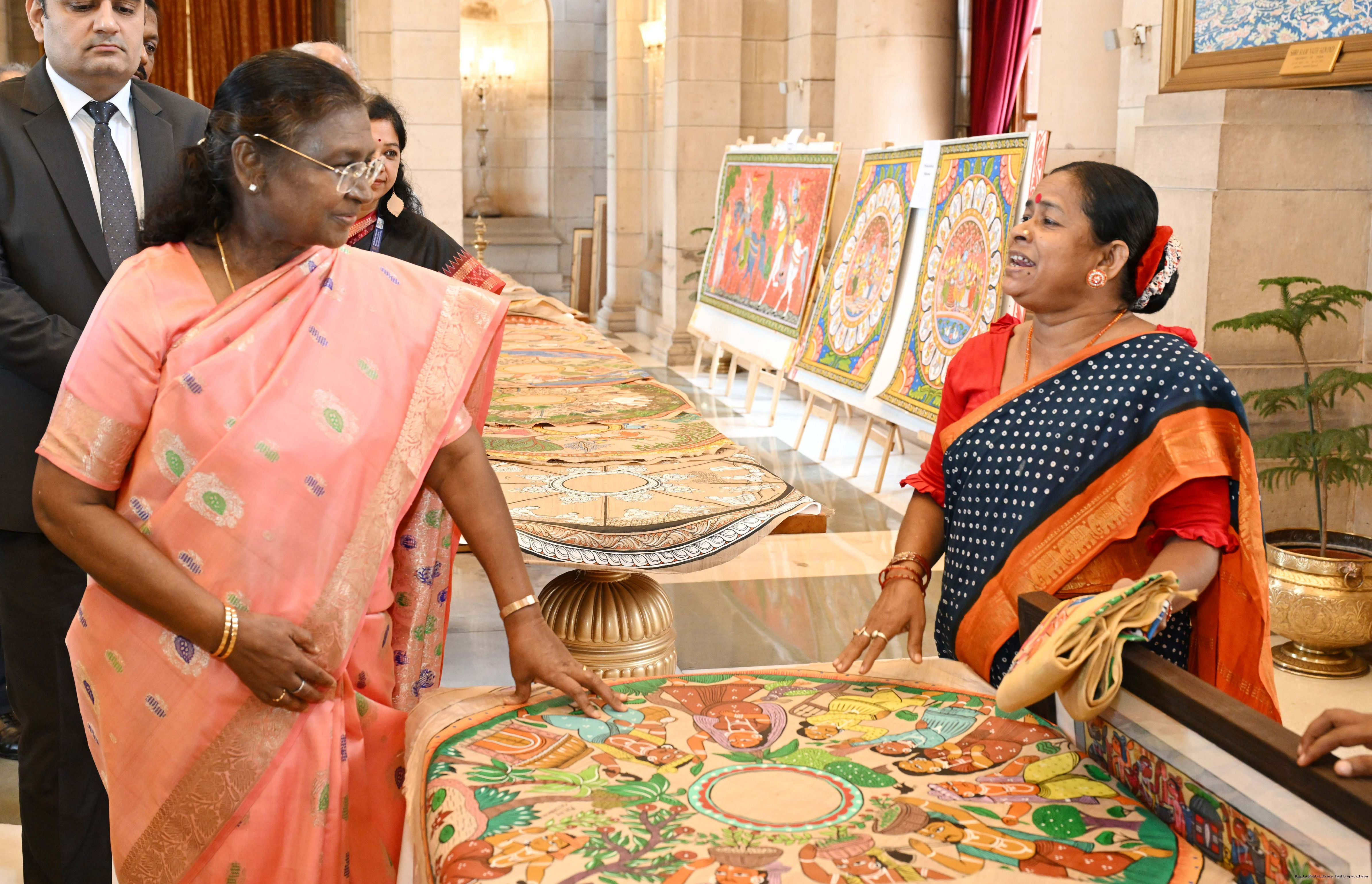 A group of Artists of Sohrai, Pattachitra and Patua art forms called on the President of India, Smt. Droupadi Murmu at Rashtrapati Bhavan on July 24, 2025.