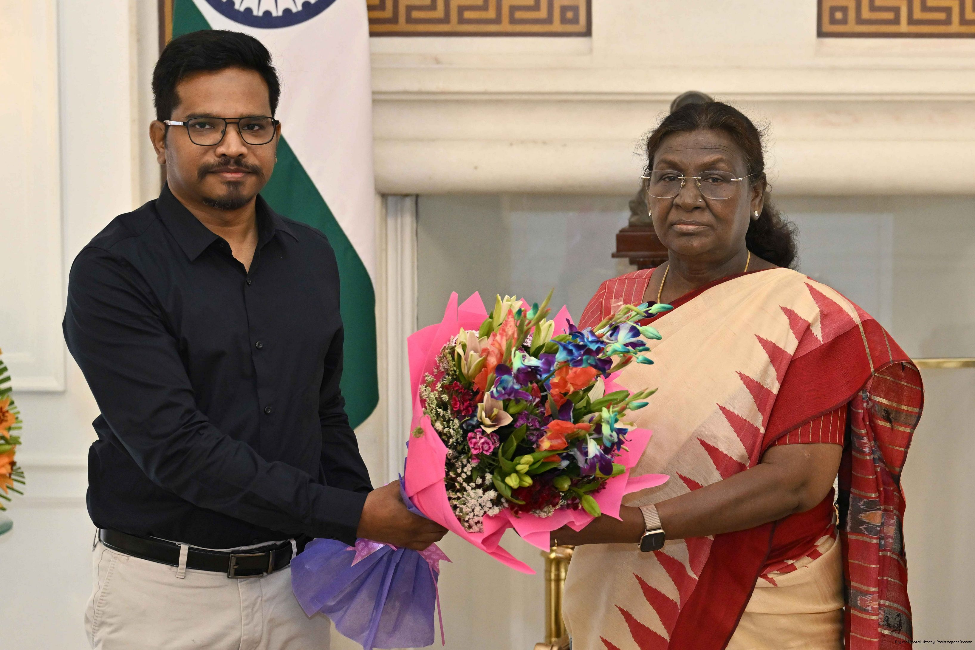 Dr Bibhu Prasad Tarai Member of Parliament (lok Sabha) From Jagatsinghpur Odisha along with Wife Smt Ranushree Tarai meeting with the President of India, Smt. Droupadi Murmu at Rashtrapati Bhavan on December 08, 2025.